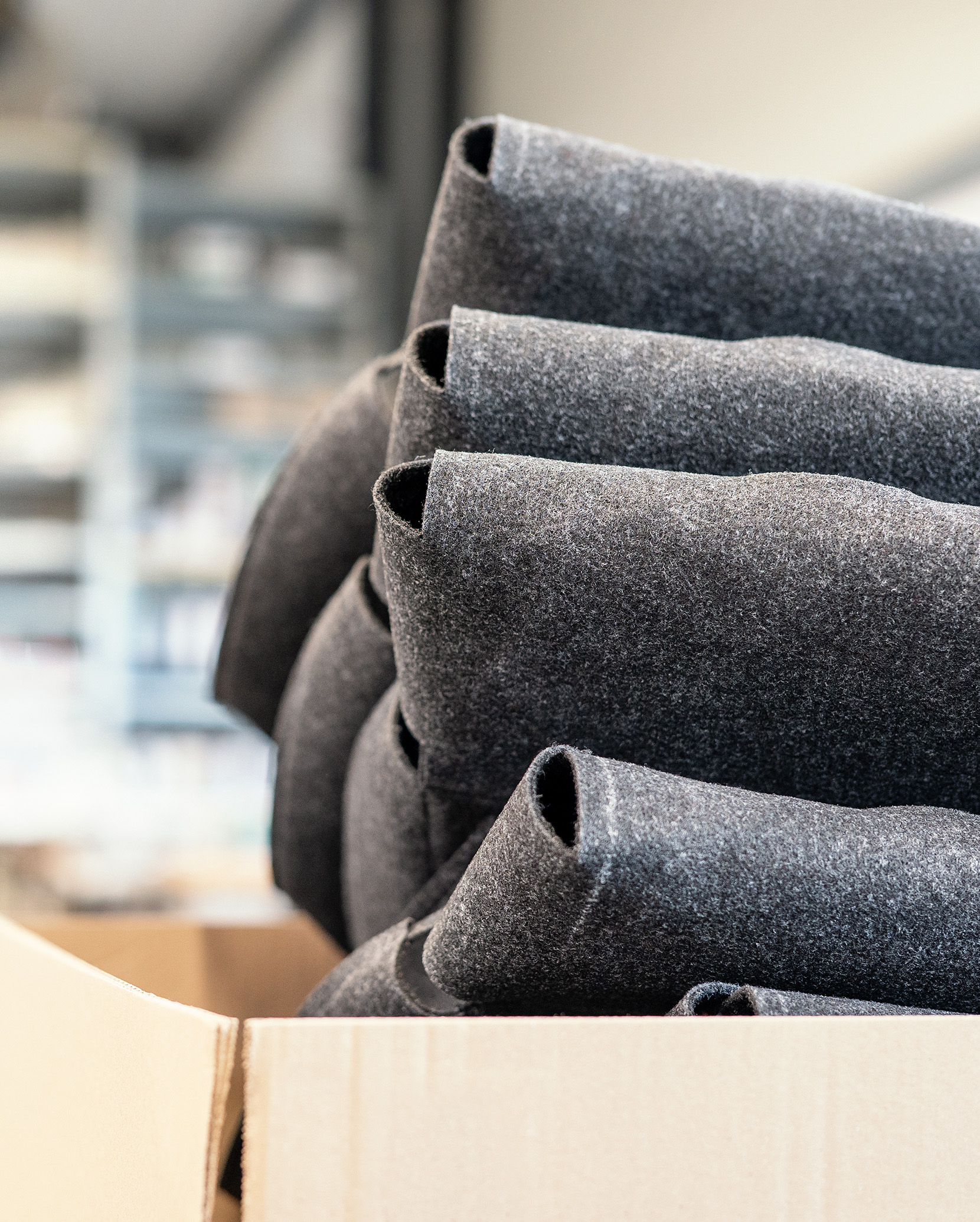 Von robusten Teppichen aus Kuhfell über Filz, Akustikfilz bis hin zu Reifenhussen: Unsere Näherei ist spezialisiert auf die Fertigung hochwertiger und langlebiger Produkte aus verschiedensten Stoffen, Ledern und Industriefließ.